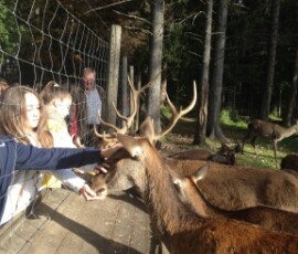 Beide Gruppen besuchten bei ihrer Wanderung auch eine Wildfütterung bei einem Gehege im Wald. Während diesem Spaziergang konnten sehr viele Rehe und Hirsche beobachtet werden.