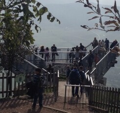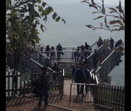 Die 3a hat inzwischen den Weg zum Skywalk genommen. Beim Skywalk handelt es sich um eine Aussichtsplattform, die sich 120m über dem Boden befindet und einen senkrechten Blick in die Tiefe erlaubt. Nachdem wir ca. eine Stunde durch Wald und Wiesen spaziert sind, wo uns Verschiedenes über die Vegetation, Waldvögel usw. gezeigt und erklärt wurde, haben wir den Skywalk mit seinem herrlichen Panoramablick, erreicht. Das Wetter hat uns einen wunderschönen Ausblick über die bunten Felder des Wiener Beckens mit den Ausläufern der ersten höheren Berge der Alpen ermöglicht. Damit konnten wir die Grenze zwischen zwei österreichischen Großlandschaften genießen. Noch ein paar gelungene Fotos und schon waren wir auf dem Rückweg zum Parkplatz, wo schon die andere Gruppe auf einem sehr schönen Spielplatz auf uns gewartet hat.