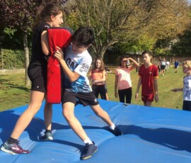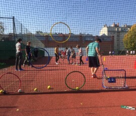 Am Donnerstag, den 18.10.2018, war es endlich wieder soweit. Aus sportlicher Sicht konnte der Start ins neue Schuljahr gebührend begangen werden. Dies wurde zelebriert mit dem U-Tour Stopp 2018 in der Grimmgasse. Zum zweiten Male wir die Sportunion und ihre Vereine in unsere eigene Sportstätte einladen und dadurch das Angebot für Schülerinnen und Schüler noch deutlich zugänglicher machen. Dadurch kamen die zweiten, sechsten, siebten und teilweise auch die dritten Klassen in den intensiven Sportgenuss. Konkret konnten die Schüler acht Sportarten ausprobieren und nach dem erfolgreichen Absolvieren einen Stationsstempel erhaschen. Jene, die am Fleißigsten am Sammeln, konnten sich über eine kleine freuen. Bei traumhaftem Herbstwetter wurde an diesem Tag viele Tanzschritte einstudiert, Frisbees und Bälle geworfen, mit Hockey,- und Lacrosseschlägern hantiert, Trendsportarten ausprobiert und Gegner getackelt. Wieder ein herzlicher Dank an die Sportunion und an die engagierten Lehrerinnen und Lehrer, die beim Ausprobieren der Sportarten gleich voll dabei waren.