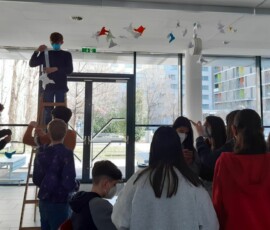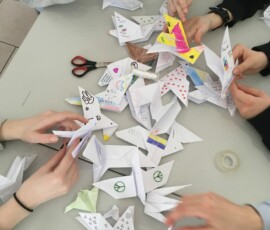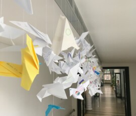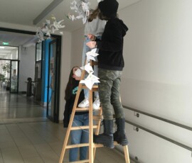 „Friede“ – ein kleines Wort, das so wichtig ist. Anlässlich der derzeitigen Situation setzen unsere Schüler:innen in der Schule ein Friedenszeichen in Form von hunderten selbstgefalteten Friedenstauben, die im Schulgebäude aufgehängt wurden. Ob erste oder achte Klasse, ob im Religions- oder Ethikunterricht, alle Schüler:innen bemühten sich sehr und waren eifrig dabei, in der Schule ein Statement für den Frieden zu setzen.