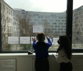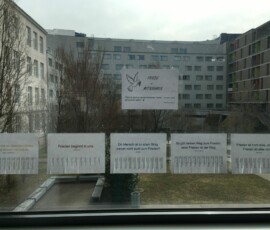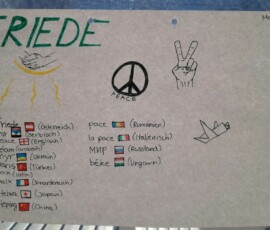 Wer den Frieden symbolisch in die Welt mit hinausnehmen will, kann sich auch ein kleines Stückchen Frieden in der Schule „pflücken“, denn zwei Schülerinnen der 8. Klasse gestalteten für uns „Frieden zum Mitnehmen“!