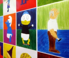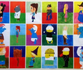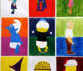 Die Schülerinnen und Schüler der 2b haben von zu Hause kleine Spielzeugfiguren in die Schule mitgebracht. Im BE Unterricht wurden diese Figuren ganz groß als gegenständliche Darstellungen detailgetreu abgebildet und farbig gestaltet. Diese Bilder wurden danach zu einem sehr großen Plakat zusammen montiert und im Klassenraum zur Freude der Schülerinnen und Schüler aufgehängt.