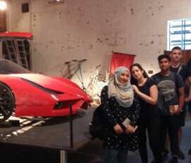 Das Highlight war mit Sicherheit das Fahrradi- das eine Kombination aus einem Ferrari und Fahrrad darstellen soll. Gerne posierten die Schüler_innen für ein Gruppenfoto vor dem langsamsten Sportwagen der Welt.