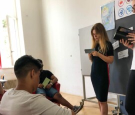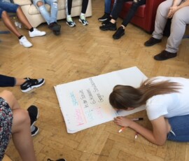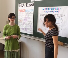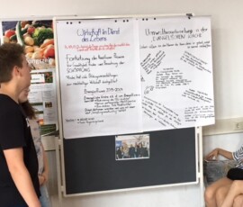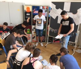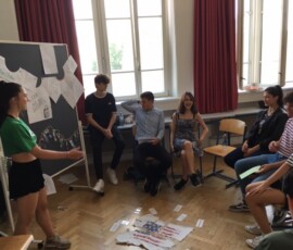 SchülerInnen erklären anderen SchülerInnen eine Thematik aus Sicht ihrer religiösen bzw. ethischen Anschauung – eine sehr gelungene und respektvolle Begegnung auf Augenhöhe.