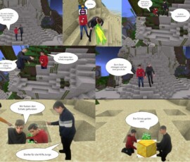 Sowohl in der 3B als auch in der 5A sollten die Schüler*innen im Rahmen des Deutschunterrichts die Klassenlektüre zu einer Fotostory umgestalten. Dabei wurden Szenen aus den Romanen: „Löcher“ von Louis Sachar (3B) und „Die Nibelungen neu erzählt“ von Michael Köhlmeier (5A) von den Schüler*innen nachgespielt, fotografiert, anschließend digital bearbeitet und mit Sprechblasen versehen. Dabei entstanden wieder viele tolle Arbeiten.