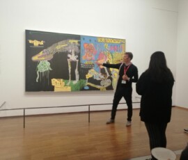 Die Ausstellung bot auch einen Einblick in Basquiats Leben und seine Karriere. Die Schülerinnen und Schüler erfuhren, dass Basquiat in den Straßen von New York aufgewachsen war und dass sein künstlerisches Talent früh erkannt wurde. Seine Werke waren oft politisch motiviert und setzten sich mit Themen wie Rassismus, Kapitalismus und sozialer Ungerechtigkeit auseinander.