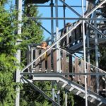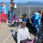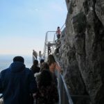 Auf dem Rückweg sind wir zu einem Turm gegangen. Von dort hatte man auch eine sehr gute Aussicht auf den Schneeberg. Danach sind wir zu einem Parkplatz gegangen und haben dort eine kurze Pause eingelegt. Die meisten sind schaukeln gegangen. Danach sind wir wieder zum Bus zurück und sind losgefahren. Nach ein paar Minuten Fahrzeit erreichten wir dann den Felsenpfad. Dort sind wir eine Treppe- entlang einer Felswand- hinunter gestiegen, die zur einer Höhle führte. In der Höhle war es ziemlich kühl, sie war auch nicht groß.