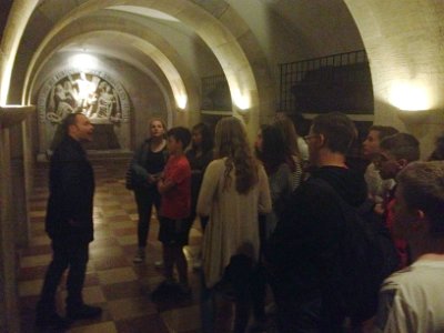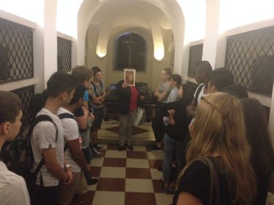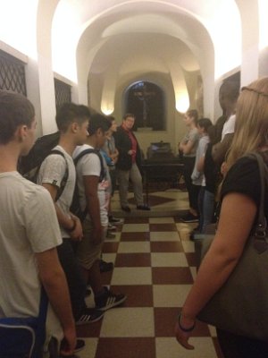Dort angekommen besuchten wir nach der kleinen Kapelle, in der heute noch Kindermessen oder Messen in lateinischer Sprache abgehalten werden, die Herzogsgruft. Nach einigen Erklärungen ging es an den Gräbern der Erzbischöfe und Pfarrer von St. Stephan weiter zu den neuen Gruften bzw. auch Katakomben genannt, wo es immer dunkler und kälter wurde. Nach einigen leeren sowie zugemauerten Räumen sahen wir die ersten Überreste von Menschen. Obwohl sich keines der Skelette bewegte, lösten diese bei einigen SchülerInnen ein mulmiges Gefühl aus.