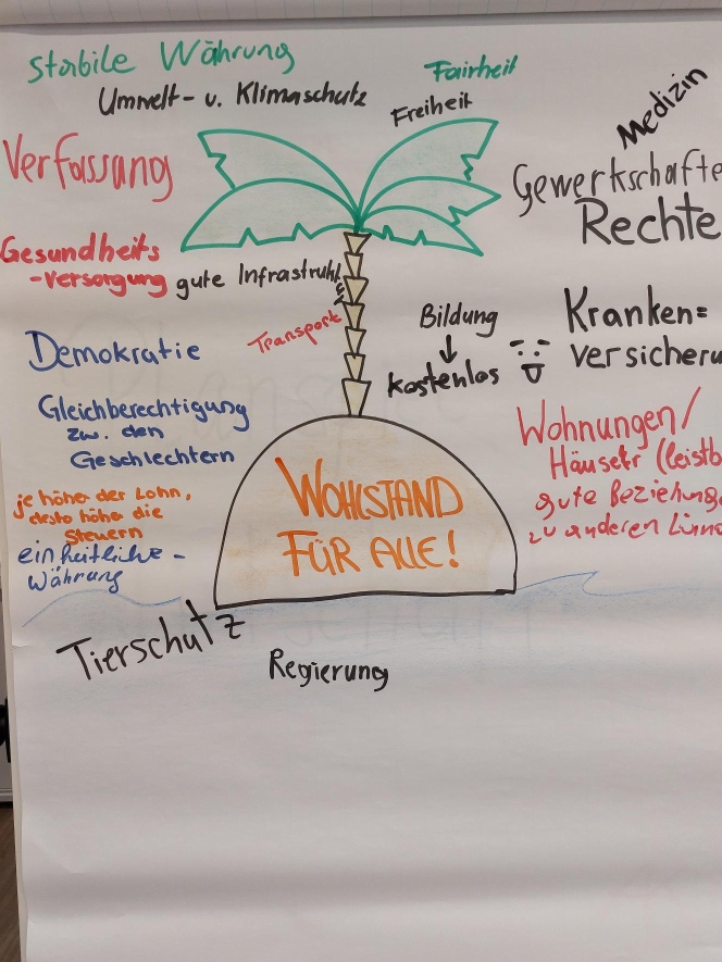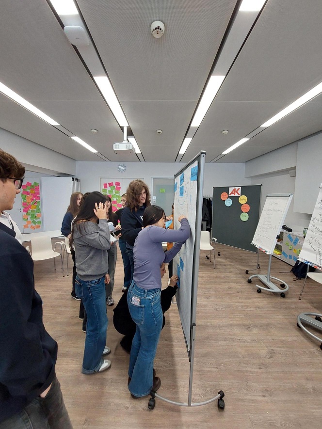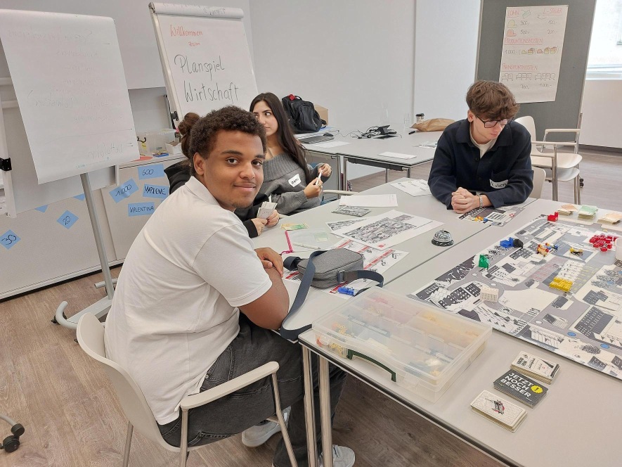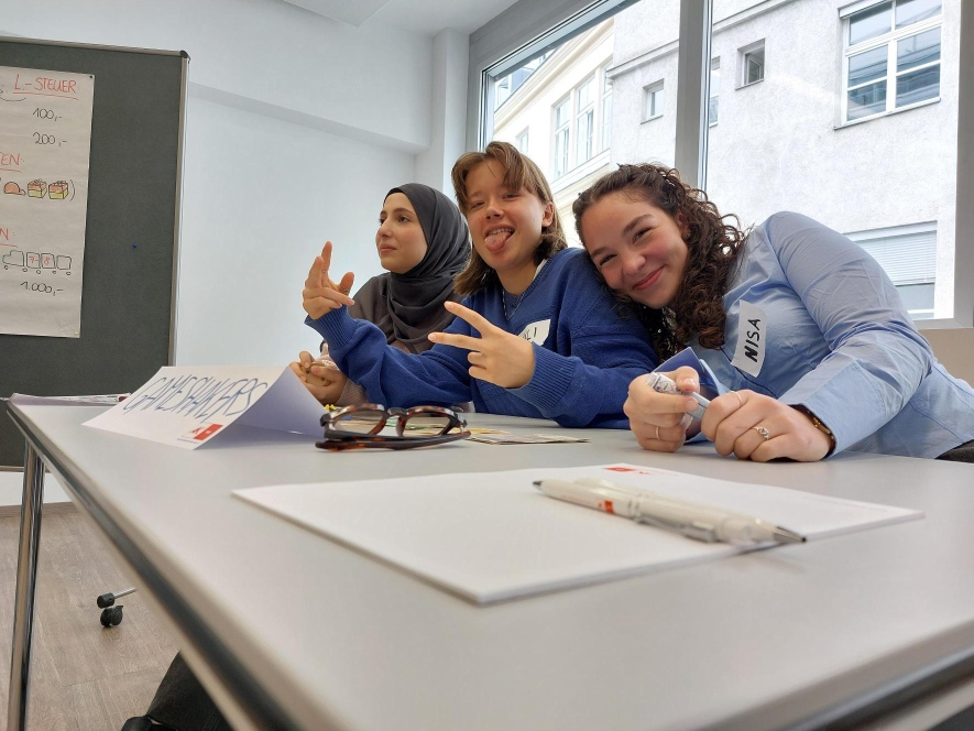 Wirtschaftliche Abläufe „hautnah“ erleben, ist das Motto des Planspieles „Wirtschaft“. Die Schüler:innen übernahmen die Rollen von Arbeitnehmer:innen und Unternehmer:innen bzw. der Regierung. Gemeinsam mit den Trainer:innen wurden betriebs- und volkswirtschaftliche Zielsetzungen erarbeitet und miteinander verknüpft. Die 7A meisterte alle Etappen des Planspiels mit Bravour.