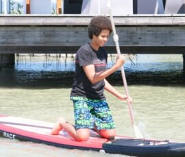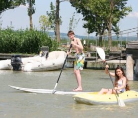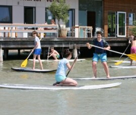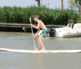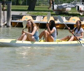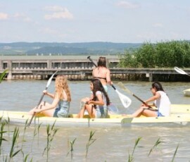 Nach einer Zugfahrt, bei der wir uns sehr aneinander kuscheln mussten und großteils am Boden des Waggons saßen, kamen wir endlich im Strandbad in Weiden an. Bald darauf hieß es: Ran an die Paddel! Einige versuchten sich im Stand-up-Paddeling und machten dabei eine sehr gute Figur, andere bekamen alleine bzw. zu zweit oder zu dritt ein Boot und paddelten damit am See. Der Spaßfaktor kam auf keinen Fall zu kurz! Nach ein wenig Fußball bzw. Volleyball spielen und einer kleinen Abkühlung im See fuhren wir wieder zurück nach Wien. Die Zeit verging wie im Flug und wir wären gerne noch länger geblieben.