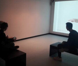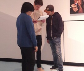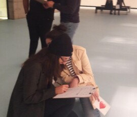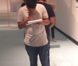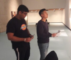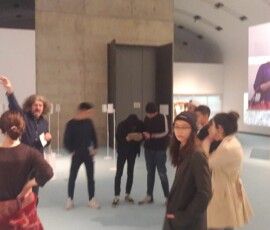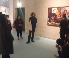 Wir wurden in 2 Gruppen eingeteilt. Ein Führer und eine Führerin erklärten uns die einzelnen Kunstwerke. Hauptsächlich waren große Fotos und Videos zu sehen. Wir bekamen auch eine Aufgabe: wir mussten Facebook -Profile für Figuren aus den Kunstwerken erstellen und Matches finden.