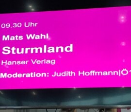 Grundsätzlich war der Plan Vorort an zwei Veranstaltungen teilzunehmen. Leider musste die Lesung “ Es glänzt und ist schön“ mit Henrik Szanto wegen Erkrankung des Vortragenden abgesagt werden. Daher war die Lesung von Mats Wahl aus seinem Buch „Sturmland“, das wir auch im Deutsch-Unterricht kurz angelesen hatten, das einzige Highlight.
