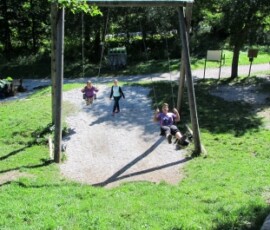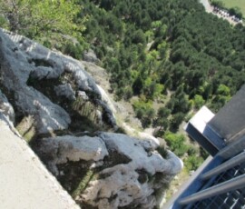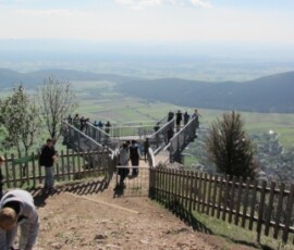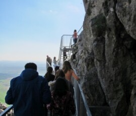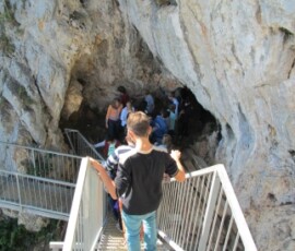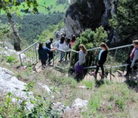 Auf dem Rückweg sind wir zu einem Turm gegangen. Von dort hatte man auch eine sehr gute Aussicht auf den Schneeberg. Danach sind wir zu einem Parkplatz gegangen und haben dort eine kurze Pause eingelegt. Die meisten sind schaukeln gegangen. Danach sind wir wieder zum Bus zurück und sind losgefahren. Nach ein paar Minuten Fahrzeit erreichten wir dann den Felsenpfad. Dort sind wir eine Treppe- entlang einer Felswand- hinunter gestiegen, die zur einer Höhle führte. In der Höhle war es ziemlich kühl, sie war auch nicht groß.