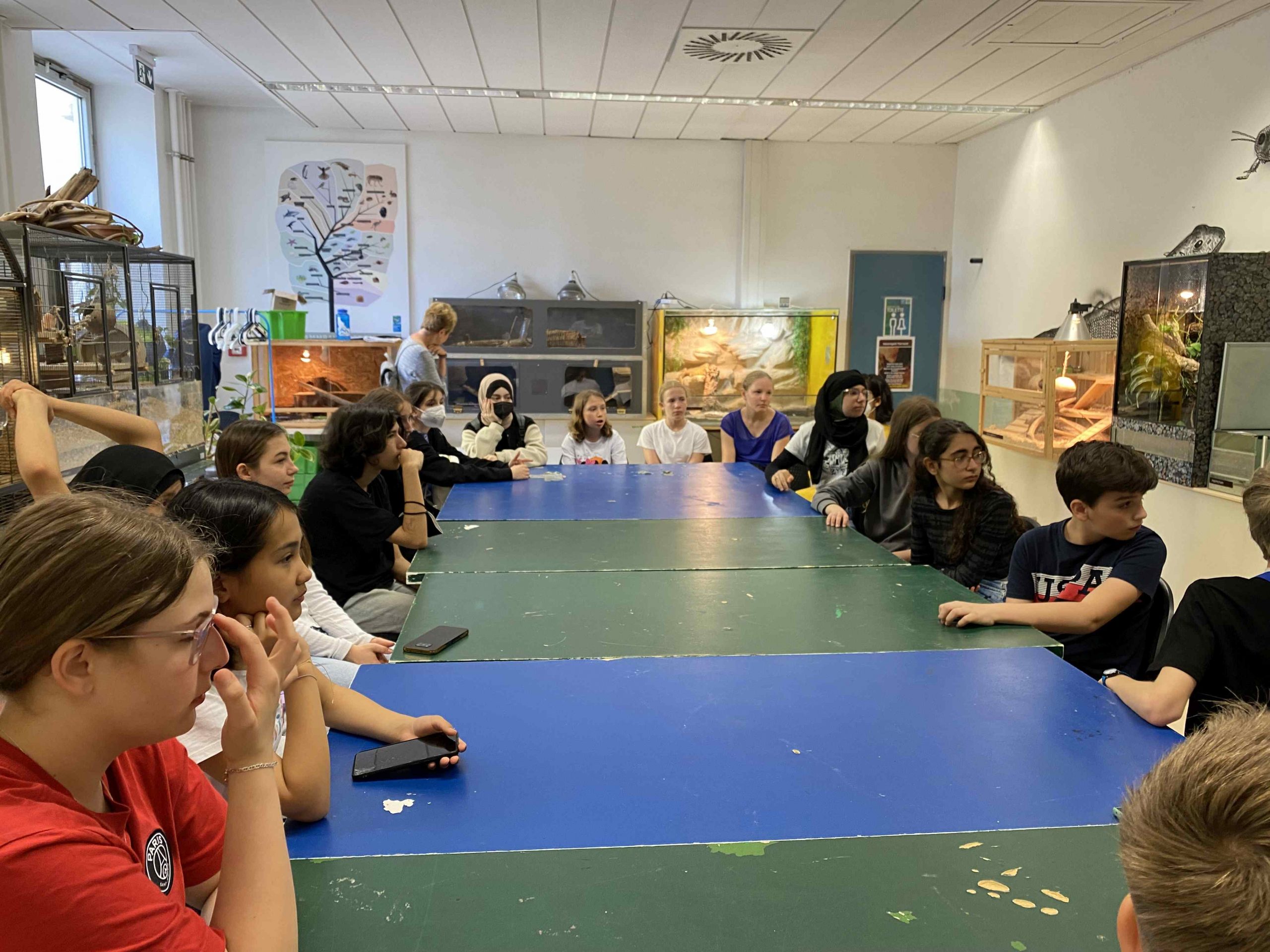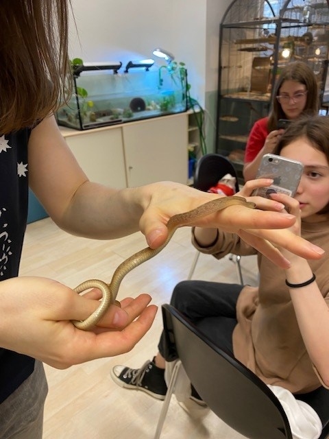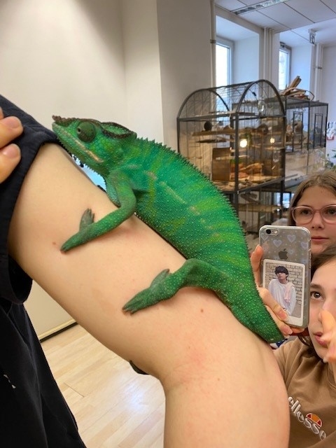 Seltsame Tiere – wir, die 2d, hatten keinen Ekel! Ob Axolotl, Chamäleon, Igeltenrek, Fauchschabe, Stabheuschrecke, Patagame und Eierschlange – wir haben alles angegriffen und hatten dabei viel Spaß!