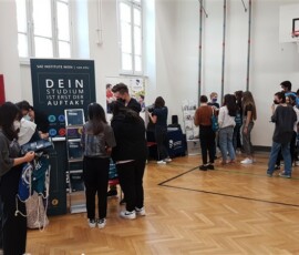 Zu sehen – und mitzunehmen – waren Infos mehrerer Fachhochschulen und Universitäten. Auch zur Stellung konnte man(n) sich bei einem Stand beraten lassen. Und die Österreichische HochschülerInnenschaft gab unseren Schülerinnen und Schülern Tipps und Links für alle Fälle des Studierens mit.