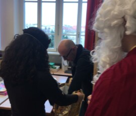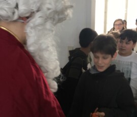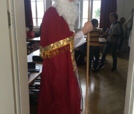 Auch im Diefenbach Gymnasium war der Nikolo zu Besuch und nahm den weiten Weg aus Myra (der heutigen Türkei) auf sich, denn daher kommt der Nikolo ursprünglich. Gemeinsam mit zwei Begleitern, seinem Gehilfen und dem Krampus, durchquerte der Nikolo die Gänge und Klassen der Schule. Er verteilte Süßigkeiten sowie Nüsse und Mandarinen.