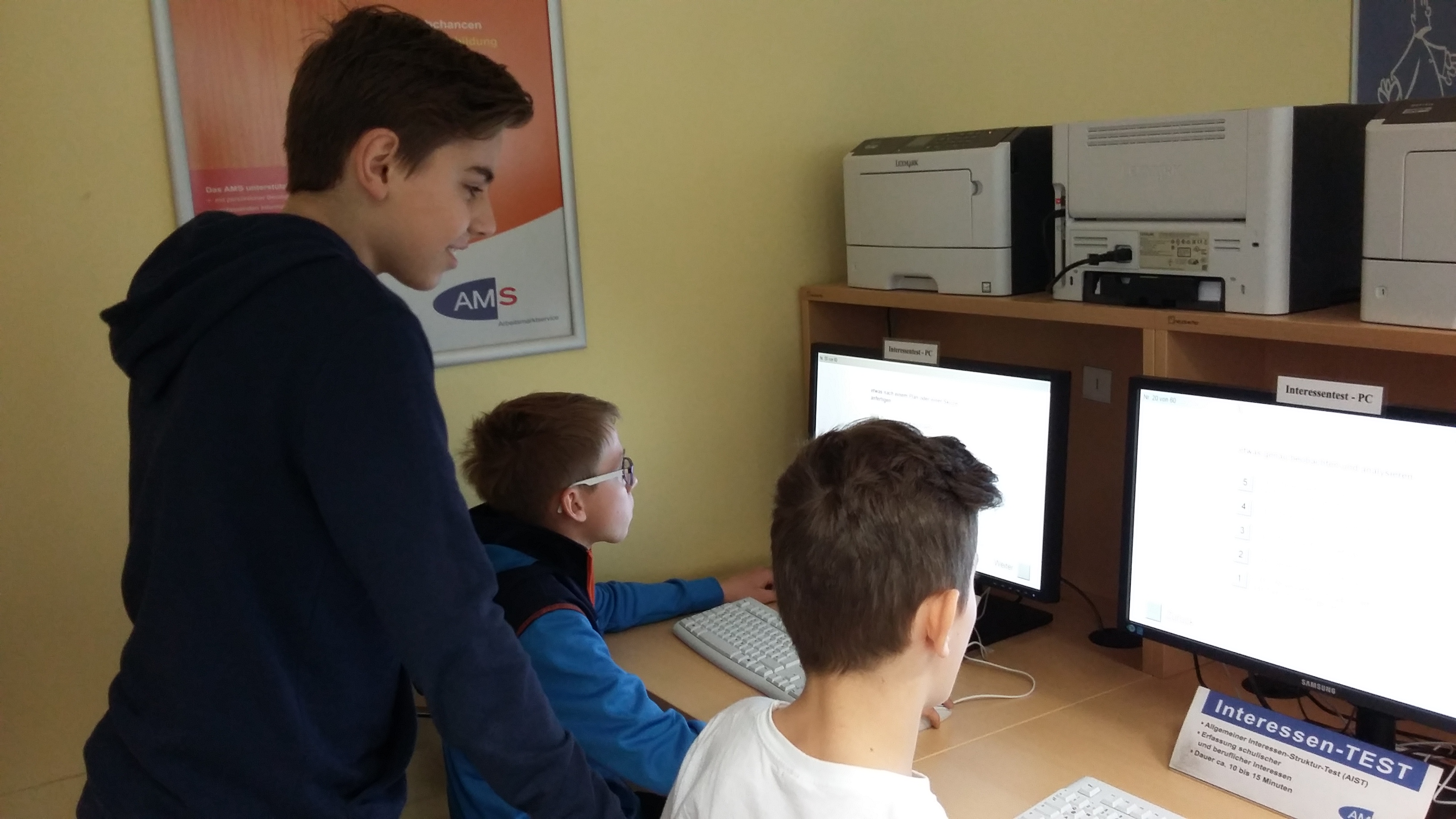 Nach einer ausführlichen Einführung über das österreichische Schulsystem, durften die Schüler/innen Interessenstests am Computer machen und wurden umgehend beraten. Außerdem gab es viele Broschüren, Flyer, Mappen über verschiedenste Berufe und Berufsgruppen.