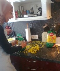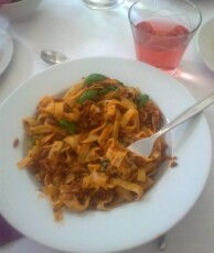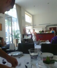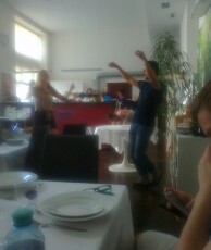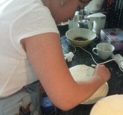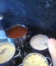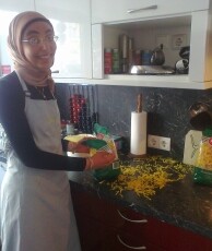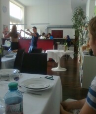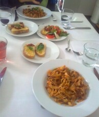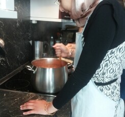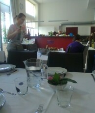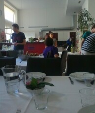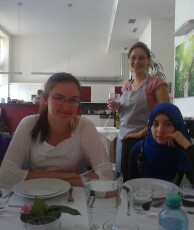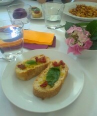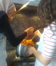 Hierbei gab es zu Beginn knusprige Bruschette mit nativem Olivenöl, würzigen getrockneten Tomaten, frischem Knoblauch und Basilikumblättern. Eine weitere Vorspeise war eine typisch italienische Caprese, mit zartem Mozzarella-Käse, Tomaten, Basilikum, Olivenöl und Balsamico-Essig. Als Hauptspeise standen entweder Tagliatelle mit einem selbstgemachten Sugo alla bolognese oder Gnocchi in einer würzigen Panna-Gorgonzola Sauce zur Auswahl, zu der man sich einen knackigen, bunten Salat nehmen konnte. Der Höhepunkt war allerdings definitiv das selbstgemachte Tiramisù, bei dessen Vorbereitung auch mal etwas Mascarpone-Füllung auf Schüler- aber auch Lehrernasen und –wangen gelandet ist anstatt es traditionell auf den kaffeegetränkten Biskotten zu verteilen.