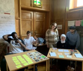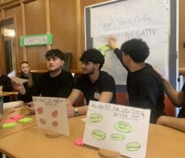 Die Mädchen der 7b und 7c entwickelten den performativen Talk moving.together, der auf der Bühne des Veranstaltungssaals aufgeführt wurde. Die Performance setzte sich mit der Frage auseinander, wie Bewegung und Tanz Verbindung schaffen und Gemeinschaft stärken kann. Im Rahmen des Projekts Leben im Netz beschäftigten sich die Schüler:innen der 7d mit Aspekten der digitalen Gesundheit. Dabei entstanden interaktive Stationen zu Themen wie Cybermobbing, Gaming, Vorbilder auf Social-Media und dem Phänomen „Brainrot“.