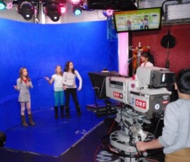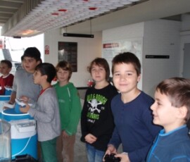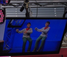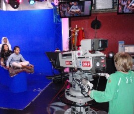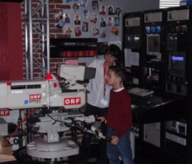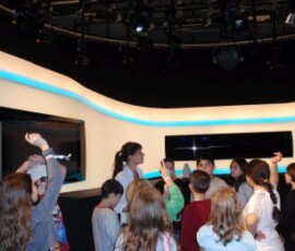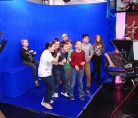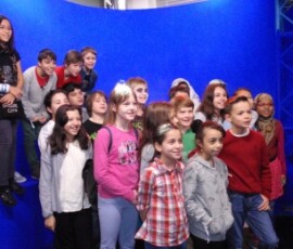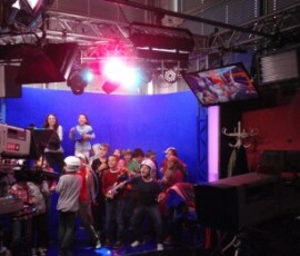 Gleich darauf sind wir in ein Studio gegangen, in dem eigentlich zwei sind. Dort waren über 1000 Scheinwerfer. Anschließend gingen wir in die so genannte „Blue Box“. Dort wird alles „Blaue“ gegen etwas anderes ausgetauscht. Ein Kind durfte in die Blue Box und zwei andere durften die Kameras bedienen. Danach kamen wir zu Tom Turbo.