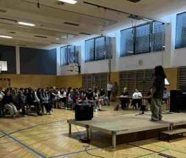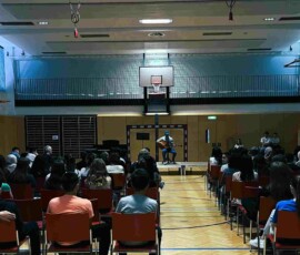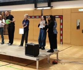 Am 12.6.2024 fand an unserer Schule eine Talentshow statt. Organisiert von den AE-Schülern der 7. Klassen wurde das Projekt das ganze Schuljahr über geplant und verfeinert, bis es mit der Aufführung schlussendlich zu seinem krönenden Abschluss kam. Insgesamt 9 Teilnehmer konnten sich für die Show qualifizieren und wir alle waren erstaunt, welche Talente an unserer Schule zu finden sind. Bewertet wurden die Auftritte von einer Jury aus Lehrern und Schülern, die zu folgendem Ergebnis kamen: