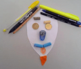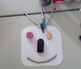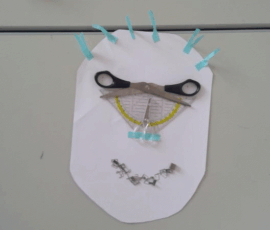 Die 2B hat sich in der Digitalen Grundbildung mit „Tinkering“ beschäftigt. Aus Alltagsmaterialien im Federpennal und in den Schultaschen wurden nach dem Motto „From trash to treasure“ Gesichter gestaltet. Durch eine kleine Veränderung wurde der Gesichtsausdruck verändert, und beide Gesichter zu einem gif verarbeitet.