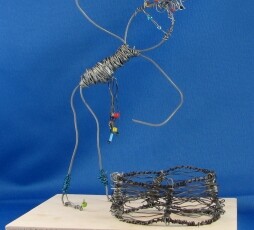 Angeregt und fasziniert von Alexander Calders Werk, insbesondere von seinem legendären „Zirkus“, den Drahtplastiken und der theoretischen wie auch zeichnerischen Auseinandersetzung mit den Maßen des menschlichen Körpers setzten die SchülerInnen Bewegungsstudien in Draht um.