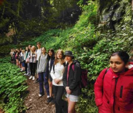 Der zweite Tag führte uns ins Gesäuse und war der wohl abenteuerreichste. Einige Schüler*innen beschritten hier zum ersten Mal einen richtigen Wanderweg und mussten dabei gleich 300 Höhenmeter überwinden. Die Anstrengungen wurden jedoch belohnt, denn oben angekommen erkundeten wir die Odelsteinhöhle, wo wir, begleitet von Nationalpark-Ranchern, in die geheimnisvolle, spannende Welt der Stalagmiten und Stalaktiten eintauchen durften. Die Schüler*innen mussten bei der Höhlenbegehung Mut, Vertrauen und Stärke zeigen und können wirklich stolz auf ihre Leistung sein!