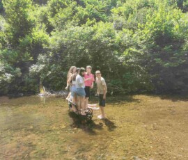 Wieder zurück im Tal konnten wir in der klaren Quelle unsere Trinkflaschen auffüllen und unsere Füße abkühlen. (Beides selbstverständlich örtlich voneinander getrennt. 😉) Die Härtesten wateten sogar einige Meter durch den eiskalten Bach!