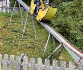 Am letzten Tag hielten wir auf der Heimfahrt noch beim Tierpark „Der Wilde Berg Mautern“. Zunächst bekamen wir eine Führung, bei der wir viel Wissenswertes über heimische Tierarten wie den Luchs oder den Braunbären erfuhren. Letzteren durften wir sogar mit seinen Lieblingsleckerlis füttern! Wir hatten auch das Glück, einen Blick auf den Nachwuchs der Wildkatzen sowie der Uhus zu erhaschen. Leider fiel die Greifvogel-Flugschau ins Wasser, aber der kleine „Vergnügungspark“, in dem sich die Schüler*innen austoben konnten, ließ die Enttäuschung darüber bald verfliegen, wie auch die Fotos belegen.