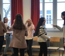 Anna hat uns auch die vier Elemente des Theaters gelehrt, welche wären: Publikum, Bühne, Stück und Schauspieler. Wie einfach der Beruf eines Schauspielers auch klingen mag, das ist er aber ganz und gar nicht, meint Workshopleiterin Anna.