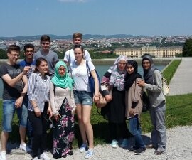 Zwei gute Gründe ins Schloss Schönbrunn zu gehen, dachten wir uns! Gesagt, getan und schon waren wir an einem sehr heißen Sommertag im Museum. Den SchülerInnen sah man die Erschöpfung, die durch die Sonne verursacht wurde, regelrecht an.