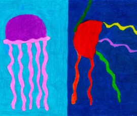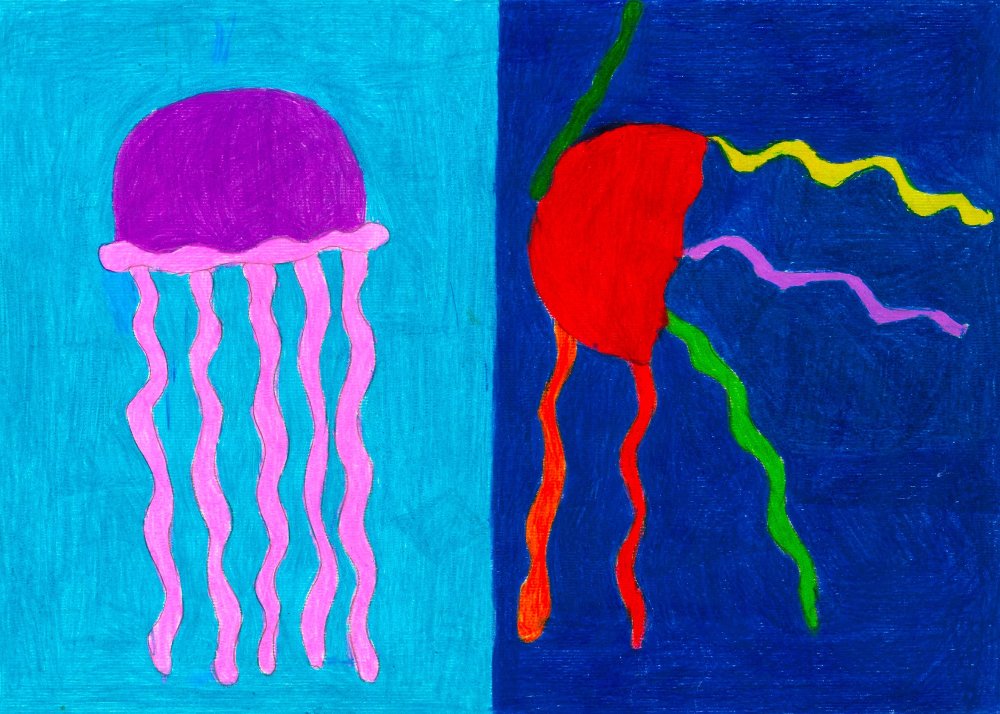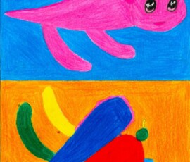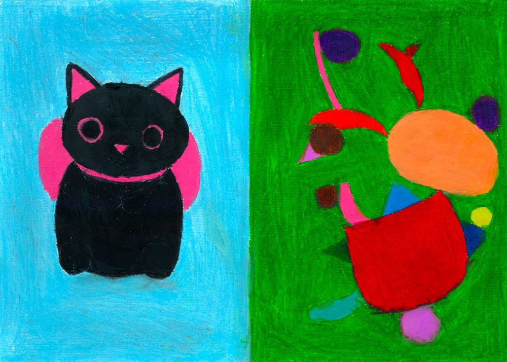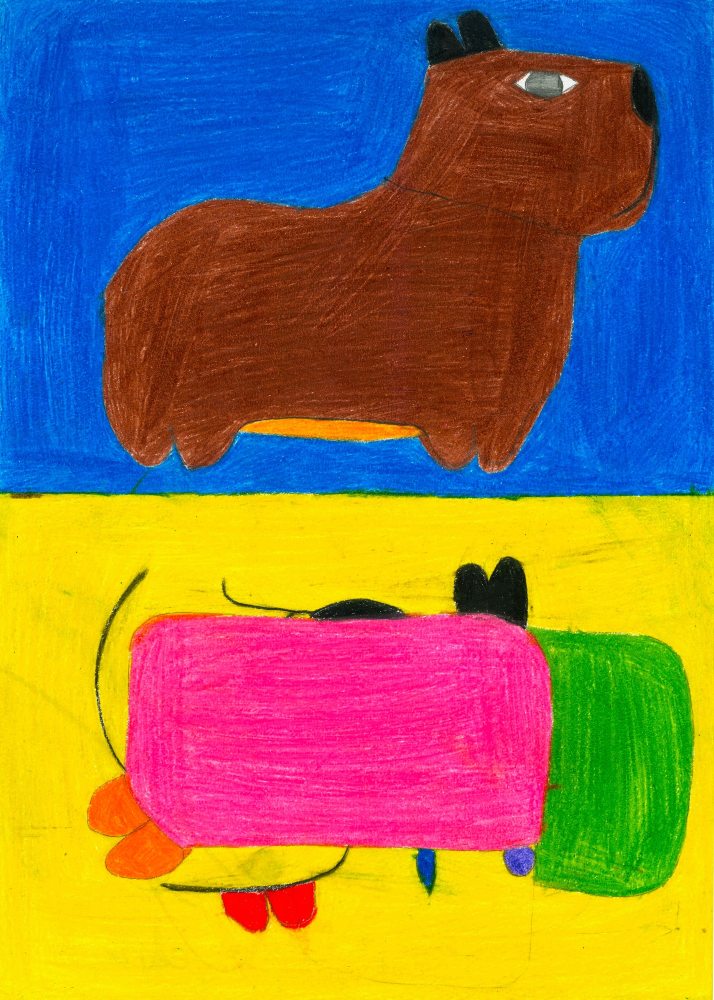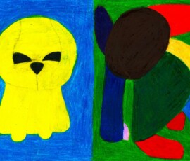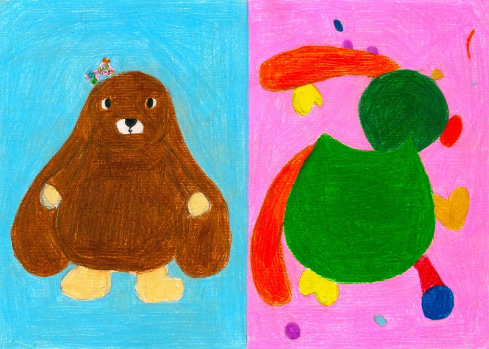 Die Schüler*innen haben sich im Kunst und Gestaltungsunterricht mit gegenständlicher und abstrakter Kunst auseinandergesetzt. Sie haben ein selbstgewähltes Kuscheltier zuerst realistisch abgebildet und anschließend in ein abstraktes Formengebilde umgewandelt.