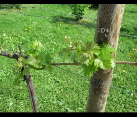 In früherer Zeit bestand hier ein Urmeer, das jedoch mit der Zeit austrocknete. Kleine Tierchen, wie Korallen und Muscheln, versteinerten und haben sich abgelagert. Sie sind heute in einigen Steinen noch sichtbar. Der Kalk im Boden sorgt für einen strengen und fruchtigen Wein mit einer guten Struktur. Anfang Juni sind die Traubentriebe schon gut ausgebildet. Die Blüten sprießen und einige Blätter werden abgebrochen, damit keine Krankheiten, wie Pilze oder Fäulnis, entstehen und die Trauben befallen. Auch systemische Pflanzenschutzmittel werden verwendet.