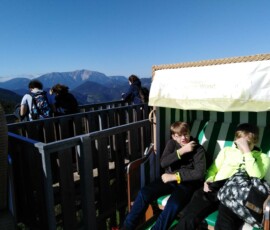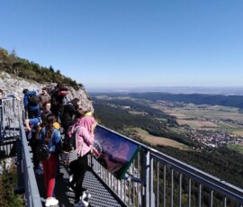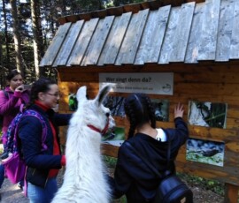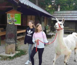 Nach einer spektakulären Anfahrt über die steile Bergstraße kamen wir beim Naturparkzentrum an und wurden freundlich von zwei Rangern empfangen. Wir besuchten den Aussichtsturm, der uns einen wundervollen Ausblick ermöglichte. Der Schneeberg und der Neusiedler See lagen mehr oder weniger vor unseren Füßen. Besondere Highlights waren der Besuch im Streichelzoo mit drei Tage alten Schweinchen sowie die Lama- bzw. Alpakaführung. Leider hatten diese nicht immer die gleichen Pläne wie wir – manche „funktionierten“ nicht, wie ein Schüler bemerkte. Den Abschluss unseres Ausflugs bildete der Skywalk, eine über den Abgrund gebaute Plattform, die uns scheinbar in der Luft schweben ließ.