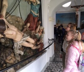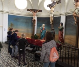 Kurz vor Ostern besuchten die ersten Klassen des katholischen Religionsunterrichts die Kalvarienbergkirche Hernals. Nach einer Kirchenrally ging es kurz zu dem danebenliegenden Ostermarkt, bevor unser nächster Programmpunkt, der Jugendkeller des Pfarrheims, am Programm stand. Nach einigen Runden Tischfußball, Tischtennis, Billard, vielen netten und angeregten Gesprächen und einer Stärkung, ging es nochmal zurück zur Kirche, nämlich zum rundherum liegenden Kalvarienberg. Dort sahen wir eine schöne Darstellung des Kreuzweges, der mit den Hauptsünden und den christlichen Tugenden in Verbindung gebracht wurde.