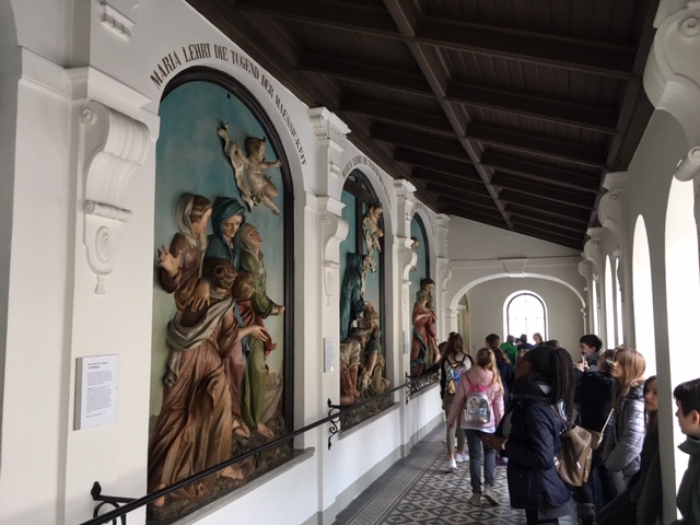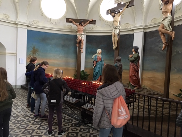 Kurz vor Ostern besuchten die ersten Klassen des katholischen Religionsunterrichts die Kalvarienbergkirche Hernals. Nach einer Kirchenrally ging es kurz zu dem danebenliegenden Ostermarkt, bevor unser nächster Programmpunkt, der Jugendkeller des Pfarrheims, am Programm stand. Nach einigen Runden Tischfußball, Tischtennis, Billard, vielen netten und angeregten Gesprächen und einer Stärkung, ging es nochmal zurück zur Kirche, nämlich zum rundherum liegenden Kalvarienberg. Dort sahen wir eine schöne Darstellung des Kreuzweges, der mit den Hauptsünden und den christlichen Tugenden in Verbindung gebracht wurde.