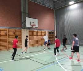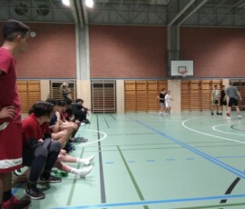 Im 4 gegen 4 Modus traten die Teams der 5., 6., 7. und 8. Klassen gegeneinander an. Während sich die fünften Klassen um Platz 5 ein Rennen lieferten, welches die 5ab ganz knapp für sich entschied, sollte das kleine Finale zwischen der 6c und der 8c2 stattfinden. Nach einem vielversprechenden Start des jüngeren Teams, konnte schließlich die Souveränität des Alters reüssieren. Die 8c2 gewann mit 22:6 und landete damit in den Medaillenrängen. Das grande Finale schließlich war der Publikumsmagnet. Hier entschied die 8c1 den Zweikampf der Giganten gegen die 7a mit 17:11 für sich.
