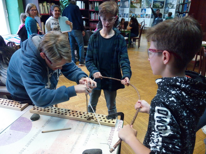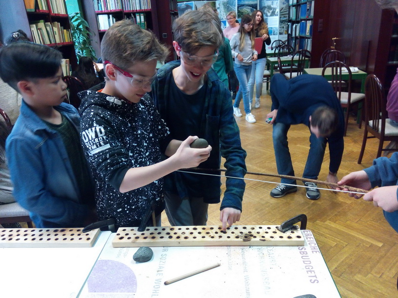 Die verbleibende Zeit durften die SchülerInnen in der Ausstellung über Dr. Carl Auer von Welsbach noch mit Magneten herumexperimentieren und sich im urzeitlichen Feuermachen versuchen.