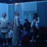 Bevor wir uns in den Saal begeben durften, mussten wir warten, dass uns die Schauspielerinnen selbst zu unseren Plätzen geleiten würden. Da sie sich öfters an der Wand anhielten und sich so verhielten, als wären sie sehbehindert, bestand bei den meisten von uns auch kein Zweifel daran, dass sie es auch wirklich sind. Im Nachhinein stellte sich aber heraus, dass dies nicht der Fall war. Als die Schauspielerinnen jeden der Zuschauer auf einen Platz gewiesen hatten, fing das Theaterstück an. Die schummrige Beleuchtung wurde fast völlig abgedreht und die Frauen verschwanden hinter der Kulisse. Nacheinander schalteten sie ihre Taschenlampen ein und liefen hin und her, was einen schaurigen Eindruck bei uns hervorrief. Im Saal waren auch kleinere Kinder und manchen von ihnen lief der Schauer über den Rücken. Das merkte man daran, dass sie wie am Spieß geschrien haben.