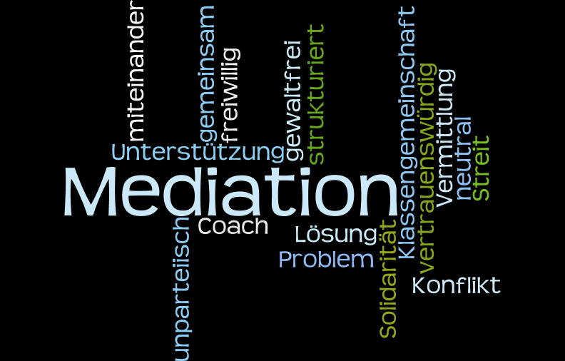Unser Ziel ist es, dass wir euch helfen, eure Klassengemeinschaft zu stärken, sowohl bei gemeinschaftsbildenden Spielen als auch Sesselkreis-Gesprächen. Wir sind bemüht, dass sich jeder in seiner Klasse willkommen und wohl fühlt. Mediationen werden entweder zwischen Einzelpersonen oder im Klassenverband anhand von fünf festgelegten Phasen durchgeführt.