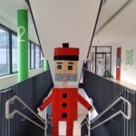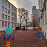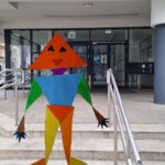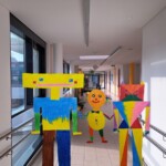 Im BE-Unterricht wurden mit geometrischen Formen spannende menschenähnliche Figuren zeichnerisch gestaltet und digital als neue Schüler*innen in Fotos vom Diefenbach Gymnasium eingefügt. Es sind dabei großartige Collagen entstanden.