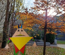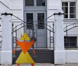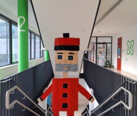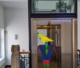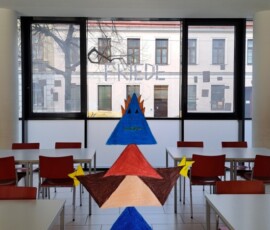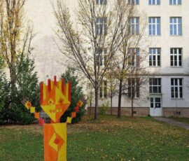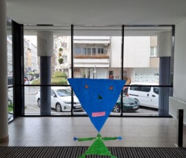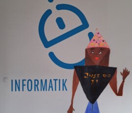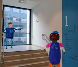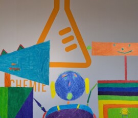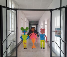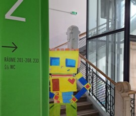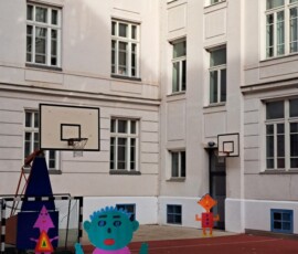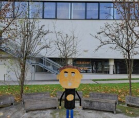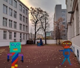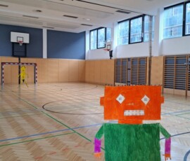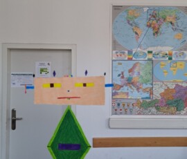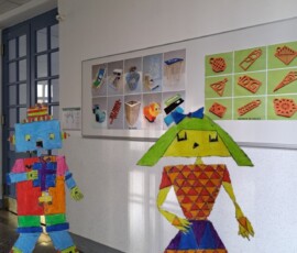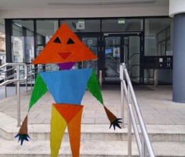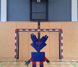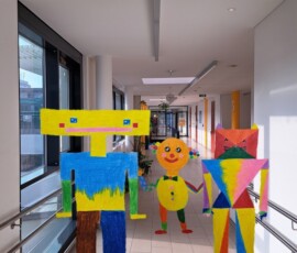 Im BE-Unterricht wurden mit geometrischen Formen spannende menschenähnliche Figuren zeichnerisch gestaltet und digital als neue Schüler*innen in Fotos vom Diefenbach Gymnasium eingefügt. Es sind dabei großartige Collagen entstanden.