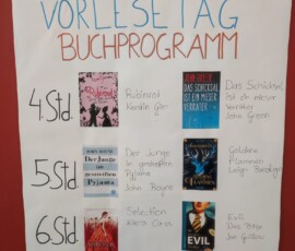 Auch heuer gab es an unserer Schule zu diesem Tag wieder Aktionen, zu denen die Klassen herzlichst eingeladen waren. Schüler:innen der KWS7 und der 6A lasen Ausschnitte u.a. aus folgenden Büchern: