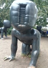 Um acht Uhr kamen wir schließlich zum Nachttheater, das sich als außerordentlich originelles und gut durchdachtes Schauspiel erwies. Ein Spiel mit Licht, Schatten und Farben, das sich letzten Endes als das gesamte Leben eines Mannes herausstellte, von seinem Fötus-Dasein bis zum Tod durch Herzinfarkt.