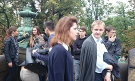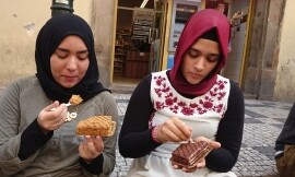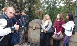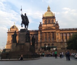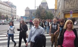 Der nächste Tag begann mit einem gewaltigen Frühstücksbuffet; es wurden nicht wie sonst üblich lediglich Wurst, Semmeln und Käse angeboten, sondern so ziemlich alles was man sich wünschen konnte, von frischem Striezel bis zu Frankfurtern mit Senf und Ketchup. Danach begann unsere zweite Altstadtführung, angefangen beim Nationalmuseum, einem riesigen, dunklen Gebäude, das sich bedrohlich über den Wenzelsplatz erhebt. Zu Mittag hatten wir dann zwei Stunden Freizeit, die einige von uns insofern sinnvoll nutzten, als sie sich einen Kebap kauften und diesen am Straßenrand sitzend genossen. Unserer ist übrigens besser.