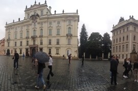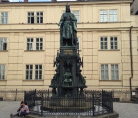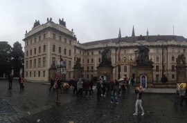 Schon bald darauf begann unsere erste Altstadtführung; ab zum Hradschin, auf Tschechisch: Hradčany, der Burgberg Prags, auf dem sich die „Prager Burg“ befindet. Eine besondere Sehenswürdigkeit (abgesehen von der Burganlage selbst), war hier der Veitsdom, der sowohl von außen, als auch von innen eine wirklich außergewöhnliche Gelegenheit bietet, den gotischen Stil zu bewundern. Letztendlich ging es dann zum Glück bergab, wir spazierten eine kurze Zeit die Moldau entlang und hatten Gelegenheit einige Souvenir-Shops zu besuchen.