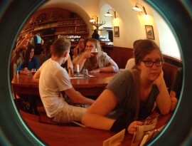 Dann kam das wohl einzig wirklich Negative an der Besichtigungstour; ein Fußmarsch bergauf, die Sonne heizte uns ganz schön ein. Über die Aussicht konnte man sich wirklich nicht beklagen: rund herum nur Felder, Obstbäume und unten Prag. Endlich oben angekommen kamen wir in ein Wirtshaus, wo wir zwei Sorten Bier probieren konnten, ein helles und ein dunkles. Anschließend gab es eine Führung durch die Brauerei, die sich als überraschend kurz, aber dennoch informativ herausstellte. Anschließend konnten wir alleine zum Hotel zurückgehen, es gab die Wahl, entweder mit der Straßenbahn oder zu Fuß. Im Hotel angekommen hatten wir wieder knapp eine Stunde Freizeit, die wir für die Suche nach etwas zum Abendessen opferten; natürlich endete die Suche für die meisten von uns beim, nicht ganz hundert Meter vom Hotel entfernten, McDonalds. Es wäre eine Lüge zu behaupten, wir hätten dadurch festgestellt, dass in Prag das McDonalds-Essen anders schmecken würde als hier, denn es hatte exakt denselben Geschmack.