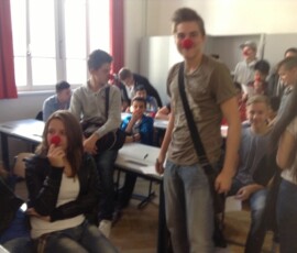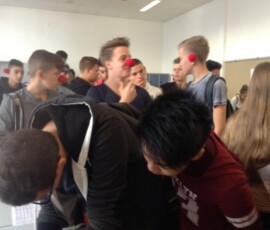 Wir – 5a, 5b und 5c – waren heute, am 19. September 2014, für die Roten Nasen sammeln. Das ist eine ganz wichtige Spendenaktion für schwerkranke Kinder in Krankenhäusern, deren Schicksal durch Humor etwas erleichtert werden soll. Wir sind glücklich, dass wir dazu auch unseren Beitrag leisten können. Das Spenden sammeln selbst ist jedoch kein Kinderspiel…