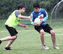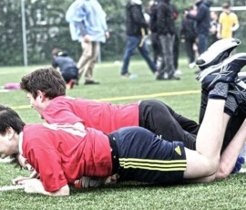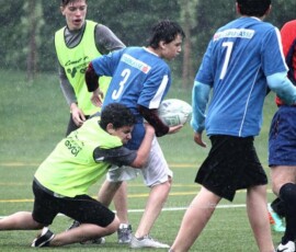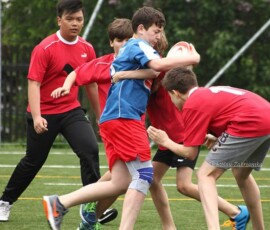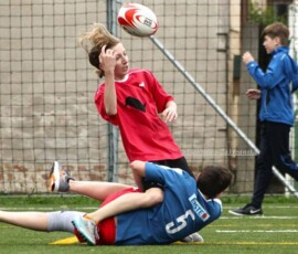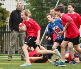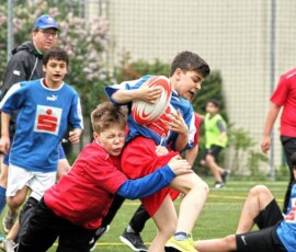 An diesem Tag wurde gefightet, gelaufen, gejubelt allerdings war das schwierigste das oftmalige Aufstehen und Motivieren nach einem Tackling oder einer Niederlage. Dies wird auch auf den Fotos ersichtlich, die Barbara Lichtblau-Zakrzanska geschossen hat und die wir dankenswerterweise verwenden dürfen. Die Schüler waren sichtlich motiviert und es wurde schon die Frage gestellt, ob es ein nächstes Jahr geben würde, nachdem wir in der Newcomer U14-Wertung das jüngste Team stellten, das – bis auf eine Ausnahme – auch im nächsten Jahr noch vollzählig spielberechtigt wäre. Schlussendlich konnte der 3. Platz erobert werden und mit im Gepäck nach Hause waren viele positive Erlebnisse und Emotionen, was sich so formuliert auch auf der Facebook Seite des Veranstalters (www.facebook.com/getintorugbyaustria) findet: „Vielen Dank für über 150 Mädchen und Jungen, die gestern alles gegeben haben – wir haben von allen Mannschaften ihr bestes Rugby und viele frohe und lachende Gesichter gesehen!“